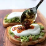 This delicious dish is not just a feast for the palate, but also for the eyes. Nestled on a cozy slab of golden-brown toast, the lush green of mashed avocado is joyfully complemented by the bright green of peas. It’s a texture lover’s dream, combining the creamy richness of avocado with the gentle bite of peas. The zing of lemon juice adds a pep of freshness that elevates this simple toast to extraordinary heights. Perfect for brunch or a satisfying snack, this recipe is as simple as it is stunning!