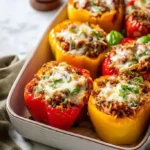 What’s not to love when vibrant bell peppers cradle a hearty filling of tender meat, fluffy rice, and melted cheese? These stuffed peppers are not just a feast for the eyes; they’re also a truly comforting dish that’s easy to prepare and full of robust flavors. The blend of hearty ground beef (or Italian sausage, if you’re feeling adventurous) combined with zesty tomatoes and creamy mozzarella offers a delightful balance that’s satisfying yet light. Plus, they look stunning on the table, making them a fantastic option for family gatherings or dinner parties.