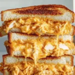 A delightful mash-up of classic grilled cheese and spicy buffalo chicken, perfect for game day or cozy evenings.
