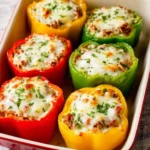Delicious and vibrant Cheesy Stuffed Peppers filled with a savory mixture of rice, beans, corn, and cheese. Perfect for family dinners or impressing guests.
