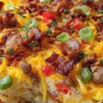 A comforting and hearty breakfast casserole featuring layers of savory sausage, potatoes, and gooey cheese, perfect for family gatherings or busy mornings.