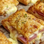 Delightful pastries with rich ham and gooey cheese wrapped in flaky puff pastry, perfect for snacks or appetizers.