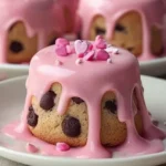 Drizzle the melted pink chocolate over each mini cake, letting it cascade down the sides. Allow the chocolate to set before serving. Enjoy your beautiful and delicious Pink Cookie Dough Mini Cakes!
